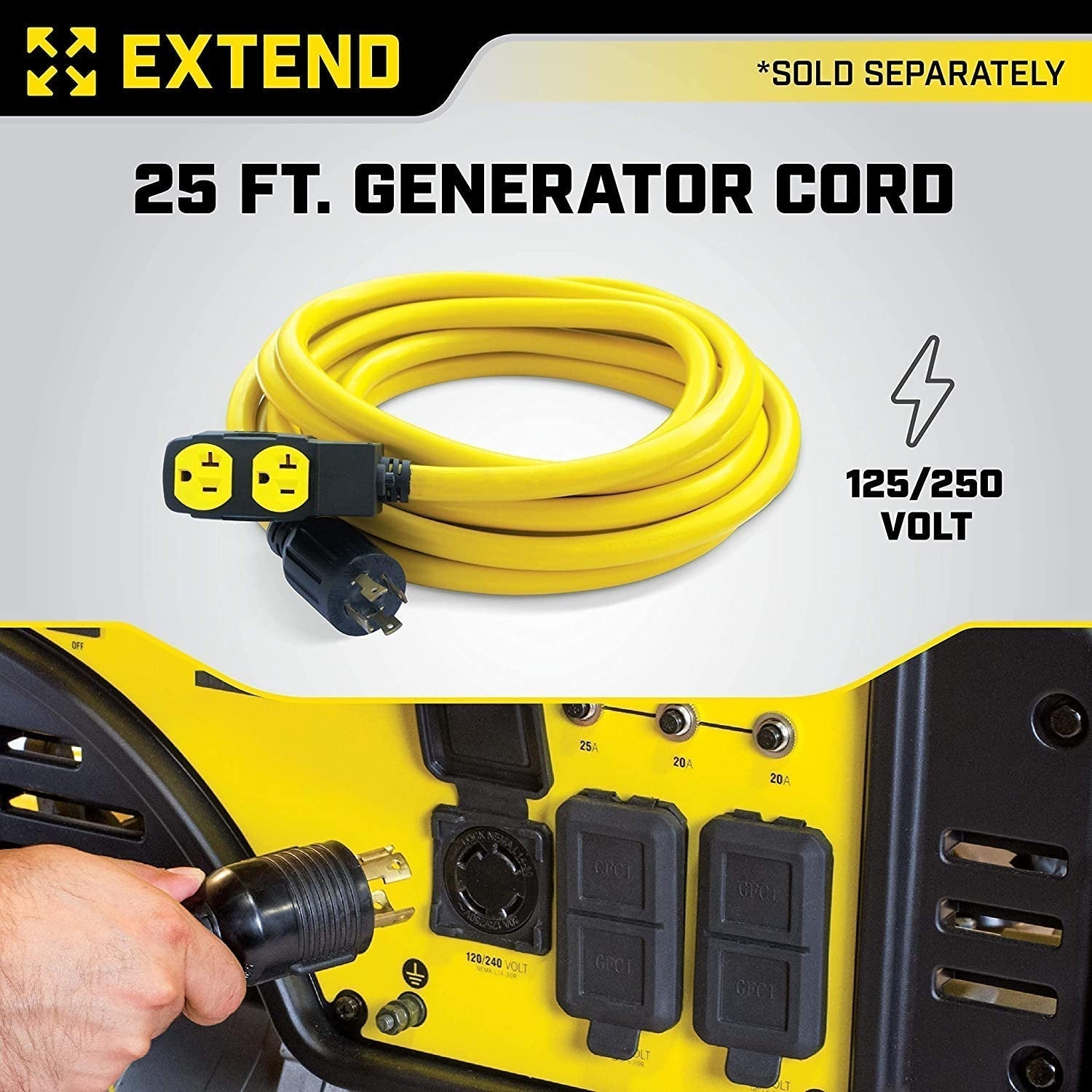 - COVERED OUTLETS: 120/240V 30A locking, 120/240V 50A RV, four 120V 20A GFCI - Volt Guard built-in surge protector prevents overloads and keeps your appliances and equipment safe