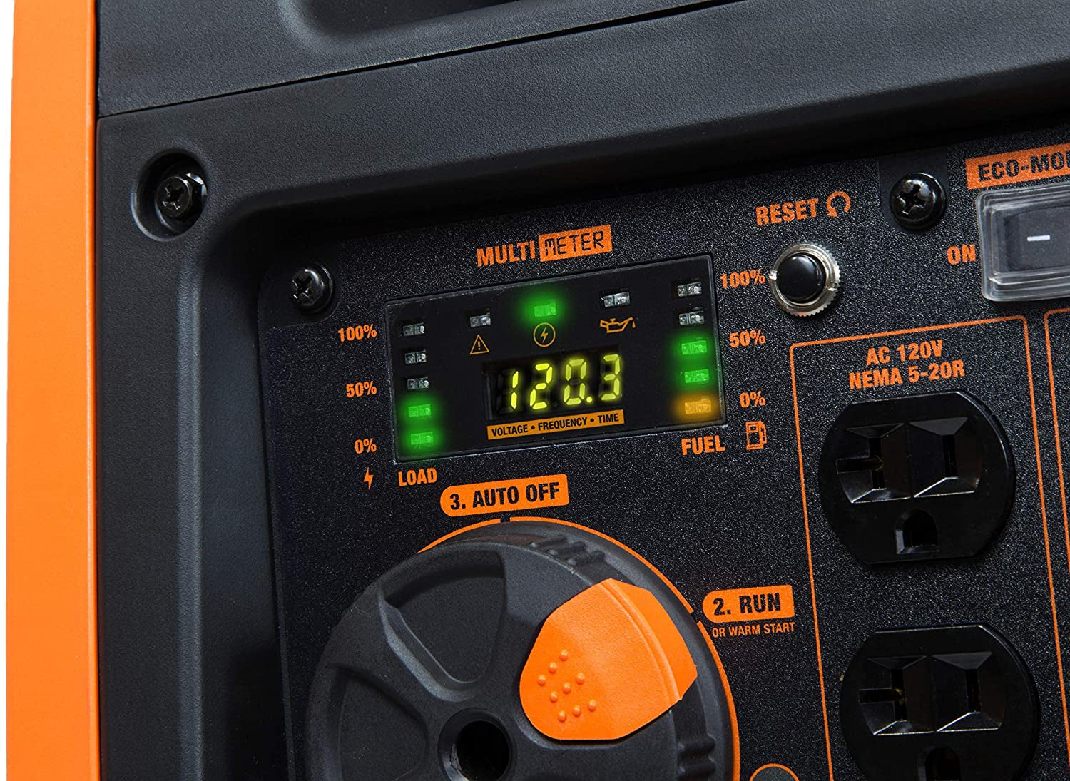 - Includes two three-prong 120V receptacles, one AC 120V NEMA TT-30R RV receptacle, one 12V DC receptacle, two 5V USB ports, a digital load and fuel display, and a two-year warranty