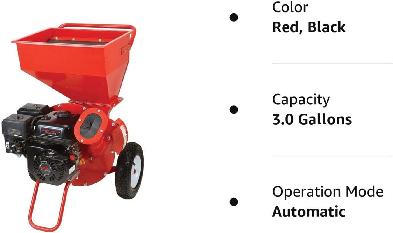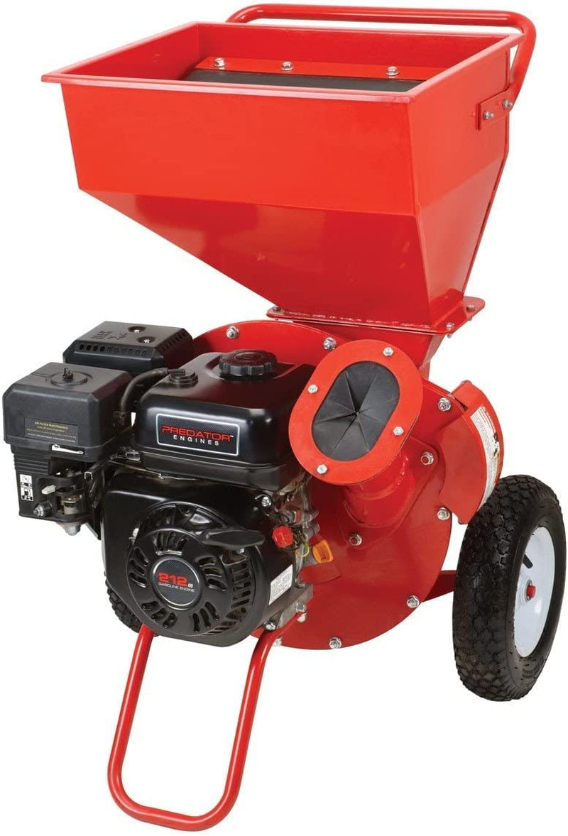 Quickly reduce piles of leaves and small branches to useful mulch with this powerful 6.5 HP gas powered chipper shredder. Chips limbs up to 3 in. diameter Heavy duty steel leaf hopper 20:1 waste reduction ratio Includes garden waste bag Shredding plate with four chipper blades Smooth-rolling 12 in. wheels Low oil shutdown Name 6.5 HP (212cc) Chipper Shredder SKU 62323 Brand Predator Outdoor Cutting capacity 3 in. Engine displacement (cc) 212cc Horsepower (hp) 6.5 Low oil shutdown Yes