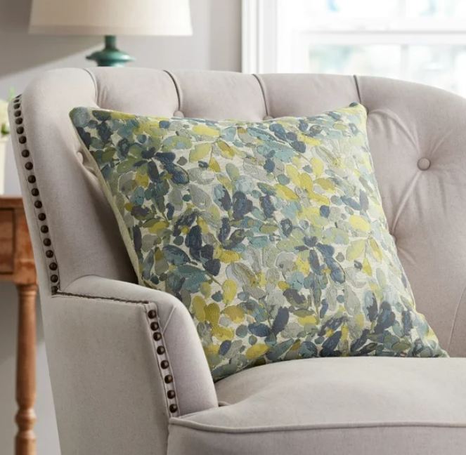 The Botanical jacquard Decorative throw pillow is a 20” x 20” square that features a beautiful Blue Botanical jacquard face with chenille accents. This pillow reverses to a solid chenille back. This Botanical jacquard decorative throw pillow is made of 100% polyester making it durable with a soft hand to the touch. The Botanical jacquard Decorative throw pillow is filled with a blend of recycled polyester fiber fill and provides comfort and support when sitting. The Botanical jacquard Decorative throw pillow comes in additional colors and is easy care and can be spot cleaned simply using a mild detergent soap and water.