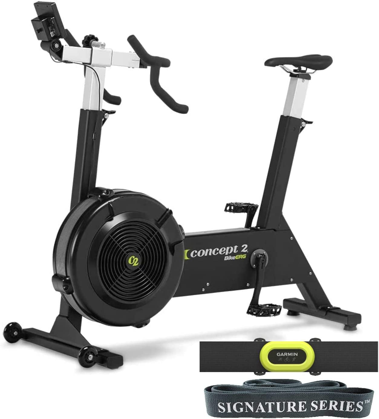 - This Bundle Contains: 1 Concept2 BikeErg 2900 Stationary Exercise Bike with PM5 Monitor, Adjustable Air Resistance for Exercise, Conditioning and Strength Training + 1 Garmin HRM-Pro, Premium Heart Rate Monitor Chest Strap, Real-Time Heart Rate Data + 1 Signature Series Resistance Band