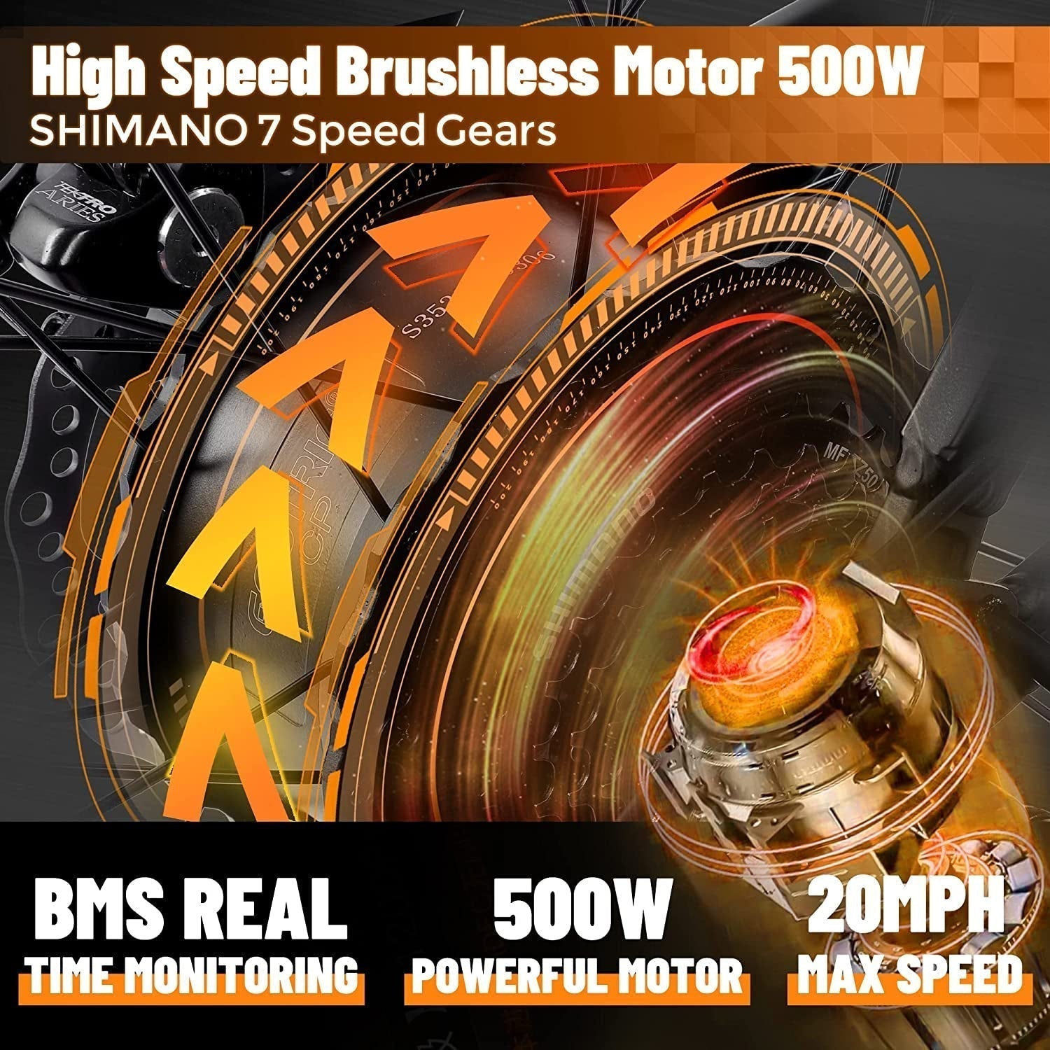 - UPGRADE BATTERY- Upgraded 36V 12.5AH lithium-ion battery, High energy density, 400-600 cycles service life, Pure electric maximum speed:20 Mph (Factory Default), Maximum speed can be set higher according to the instruction.