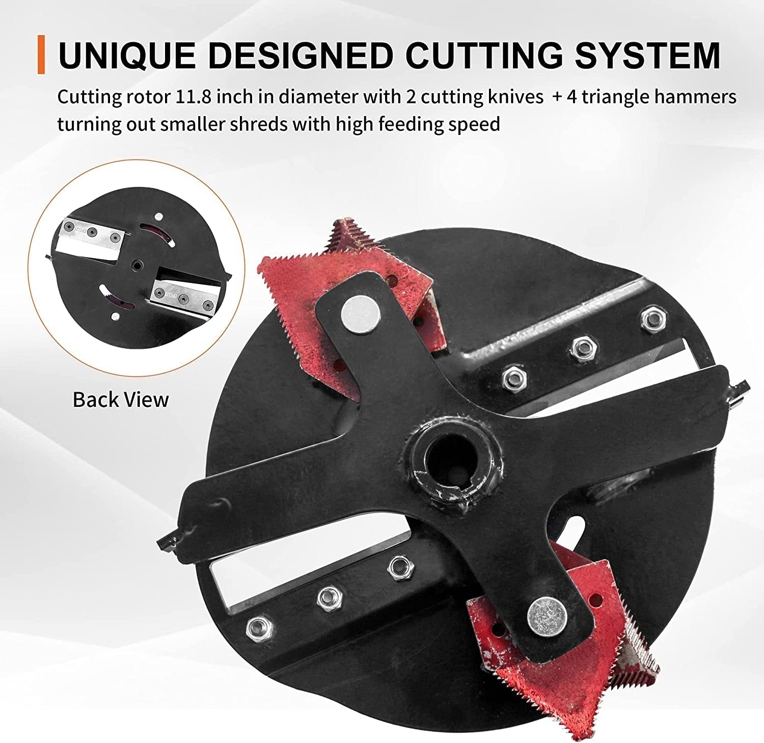 - EFCUT C30 MINI Wood Chipper Shredder Mulcher features a unique cutting system with 2 blades + 4 hammers, a bigger 11.8-inch cutting rotor than other Mini similar chippers, producing smaller shreds with high feeding speed, easily chip, shred, and mulch branches/limbs with leaves up to 3 inches in diameter into mulches, achieving a high waste reduction ratio of up to 18:1, perfectly for garden beauty and waste reduction