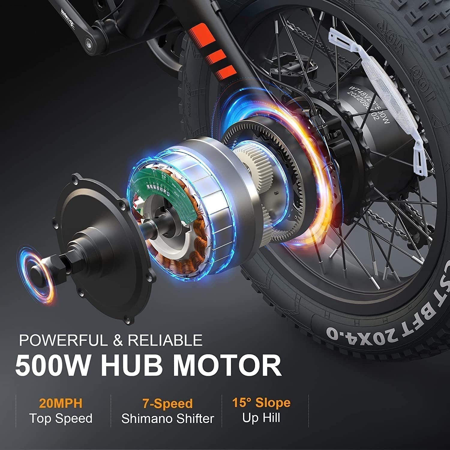 Electric Bike,20"X4" Electric Bike for Adults Fat Tire 500W 20MPH Ebike Foldable Adult Electric Bicycles Electric Mountain Bike with 48V 10Ah Removable Battery, Dual Shock Absorber, Shimano 7-Speed