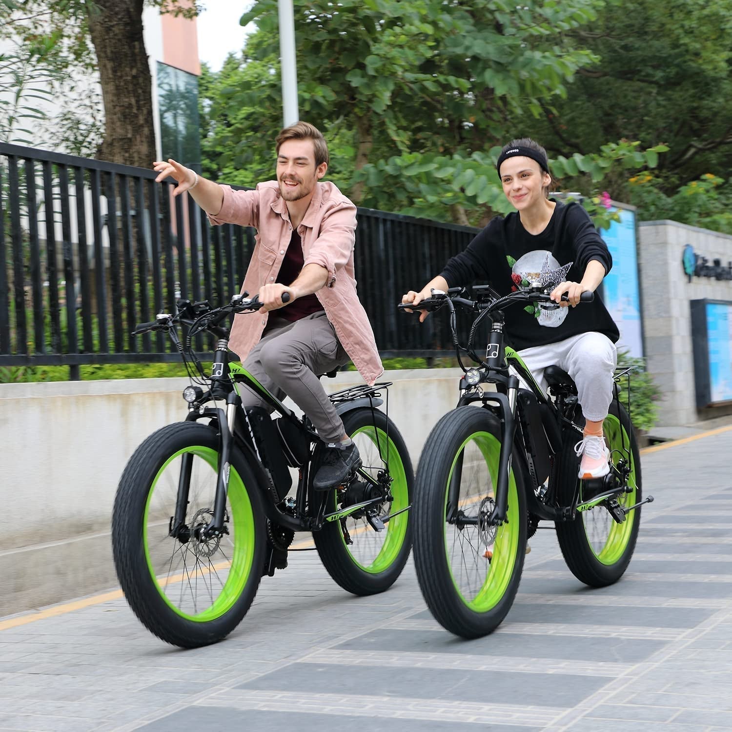 A: Fat Tire bikes are fitted with Extra-wide tires (4" inches or more). Taking the best parts of fat bikes and e-bikes has always made sense. The”fatter” tires provide extra grip, traction, and stability combined with low tire pressure, which makes them an attractive proposition for anyone looking to explore diverse terrain, better than conventional tires.