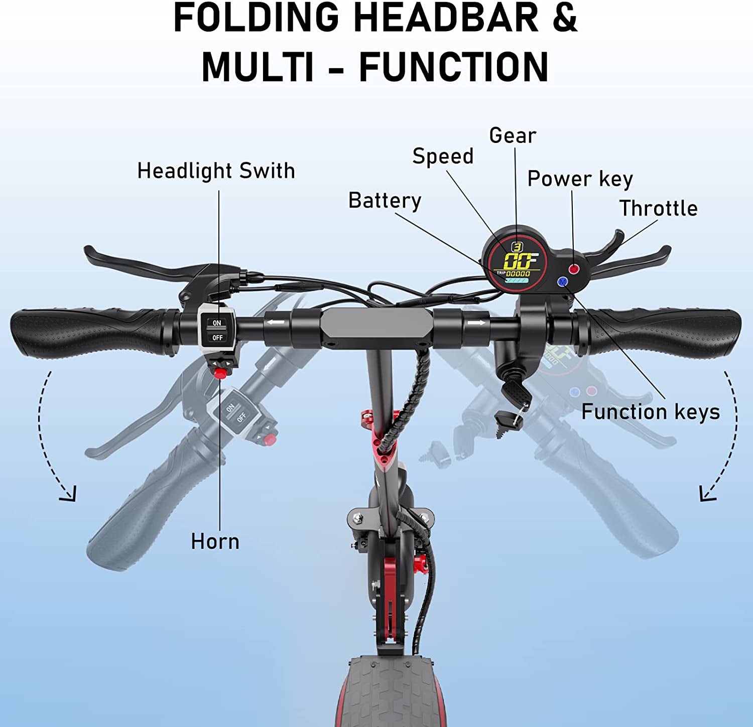 - UNIQUE AND HUMANIZE - The adult electric scooter is equipped with wider foot anti-slip pedal for larger feet support, high lumen head lamp for safe night riding, and clear LED display for relaxing riding.