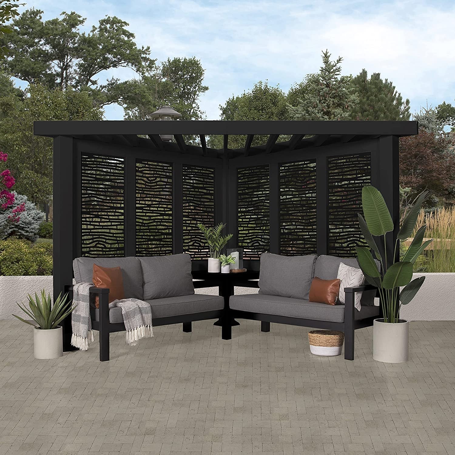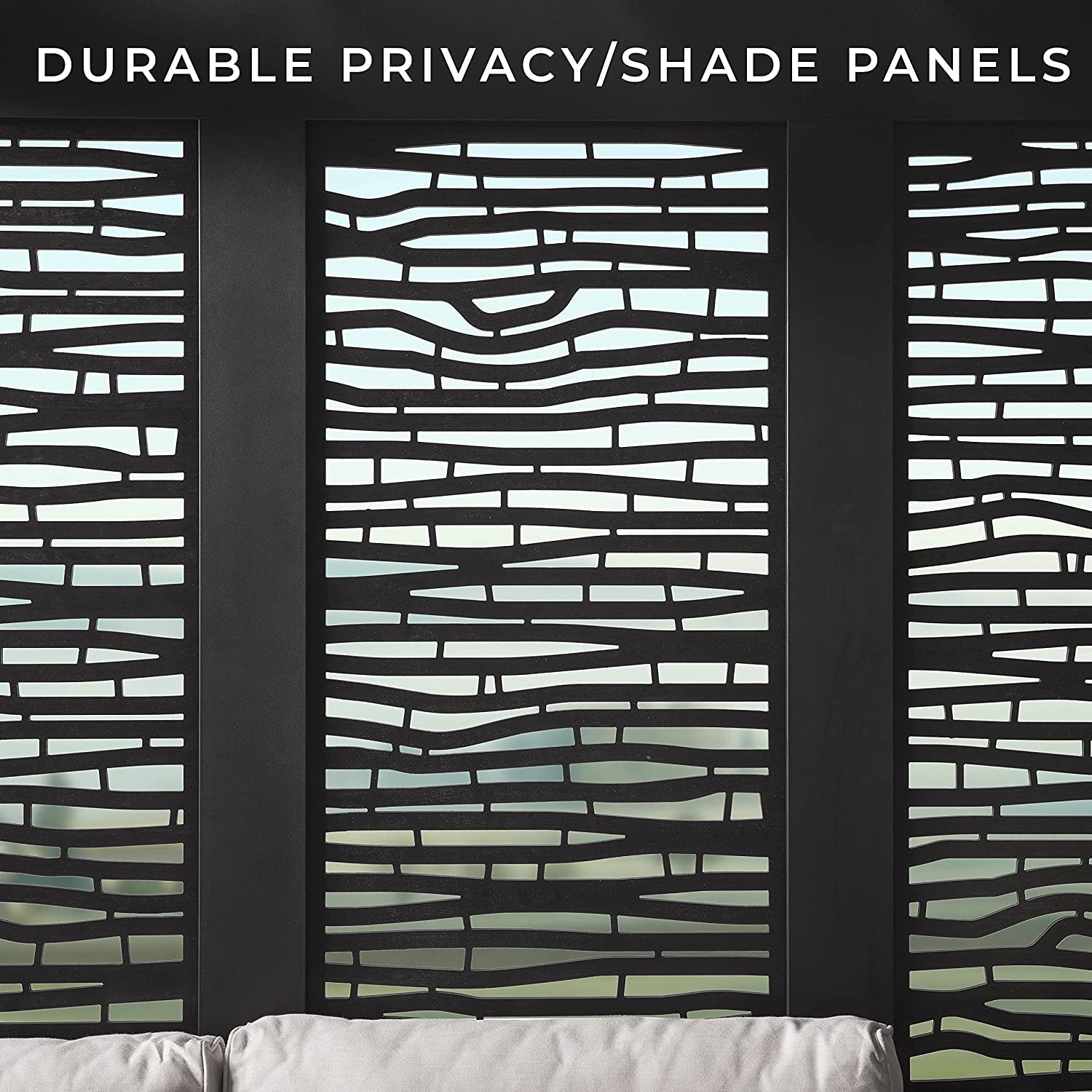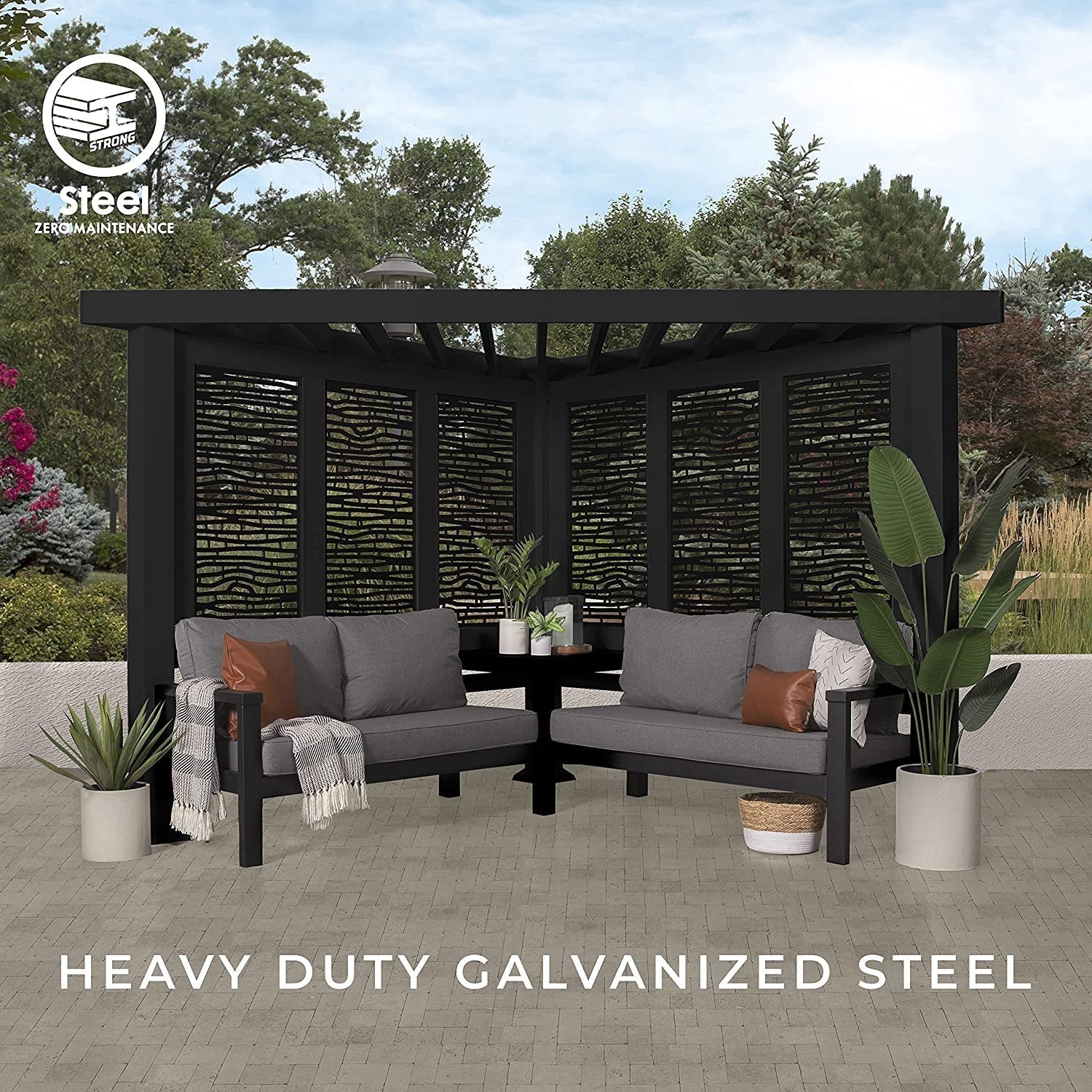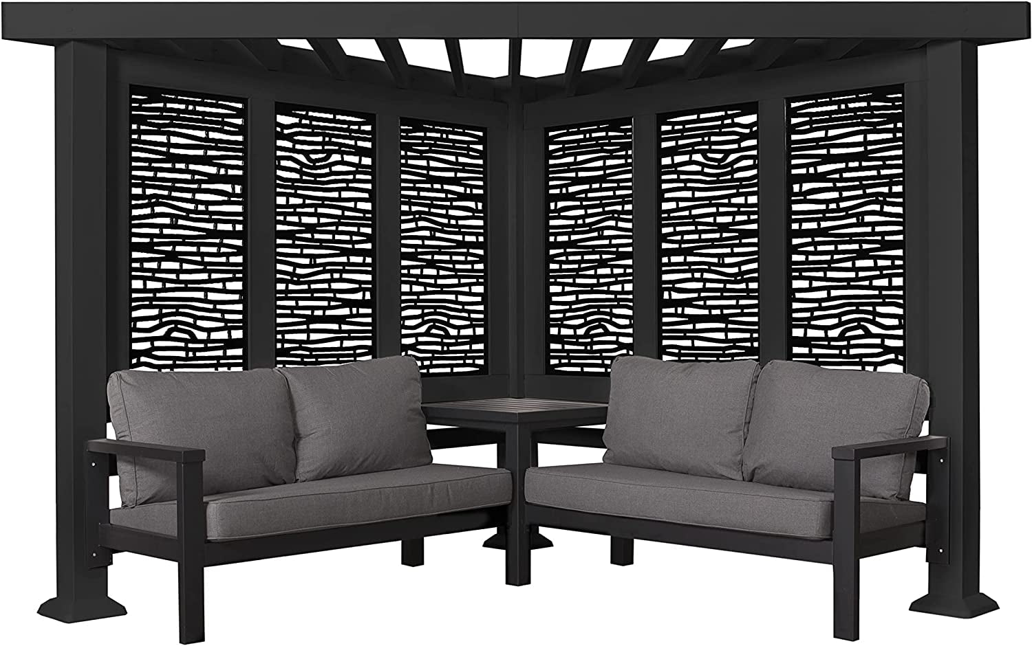 - Durable composite panels create unique privacy and added shade. Modern design concept with stylish black finish delivers popular appeal