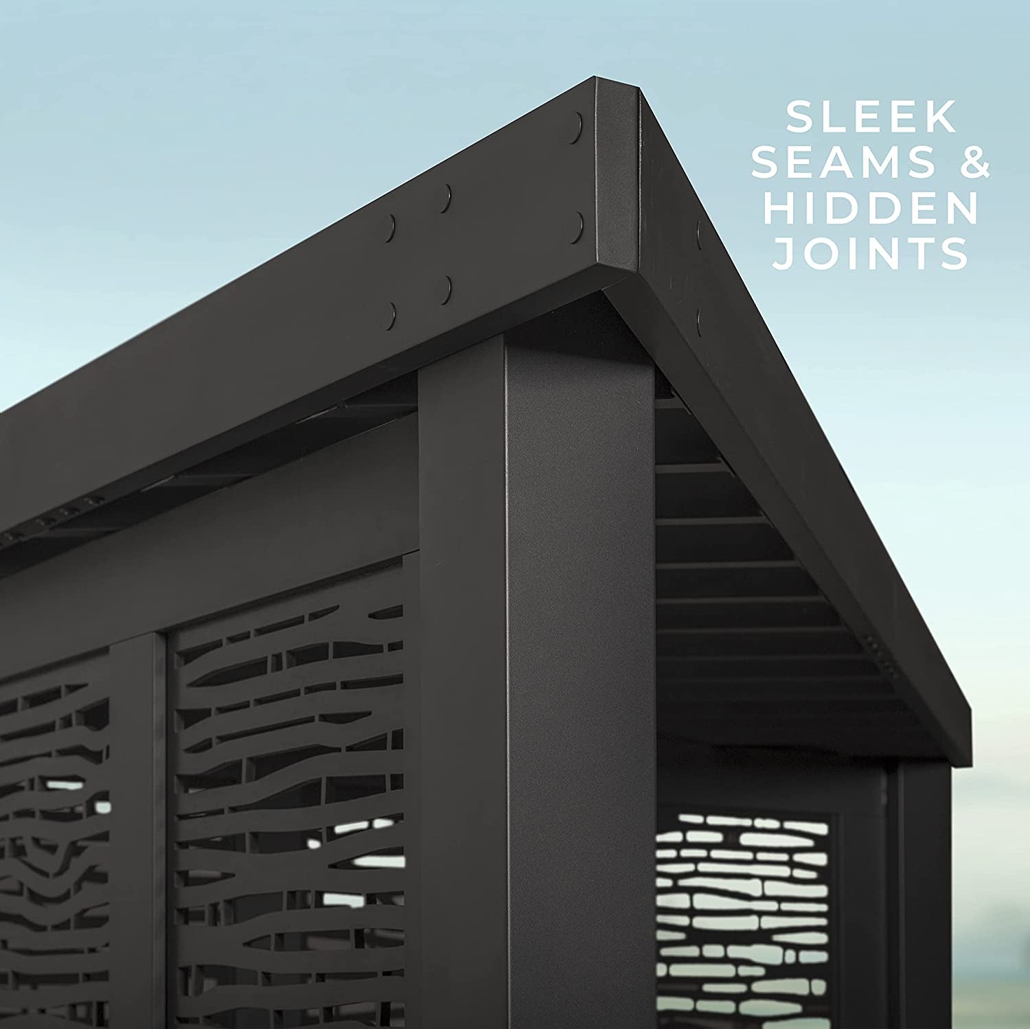 - Heavy-duty 100% steel offers stronger construction vs aluminum or vinyl structures. Internal joints add to the supreme strength while maintaining sleek exterior appearance.