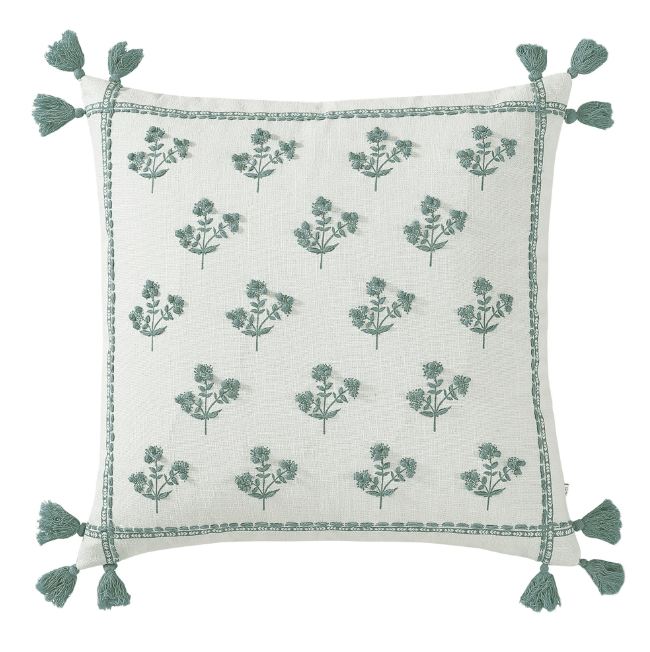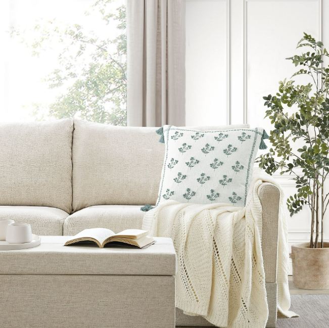 Add a welcoming touch to your home decor with the new Green Block Print Floral Decorative Pillow! This beautifully designed 20”x20” pillow is made with fun techniques and durable fabric. The green adds a splash of color to your home, along with its tassel detailing! The pillow cleans easily with simple spot care. These are also great for pairing with other pillows, adding variation of different shapes and sizes. Decorate your home with a welcoming and special look today!