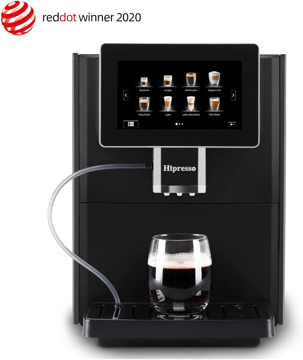 The Hipresso super-automatic espresso coffee machine spoils coffee lovers for variety.Suitable for using at home,office.With large 7 inches HD TFT capacitive touch screen,dual heating system and one touch milk frother,you can enjoy a hot,creamy,silk smooth personal coffee beverage at a touch of a button in seconds.Its outstanding conical burr grinder and brewing system ensure maximun fressness and keep original aroma and taste from fresh beans.A Bypass doser allows you to brew pre-ground coffee.