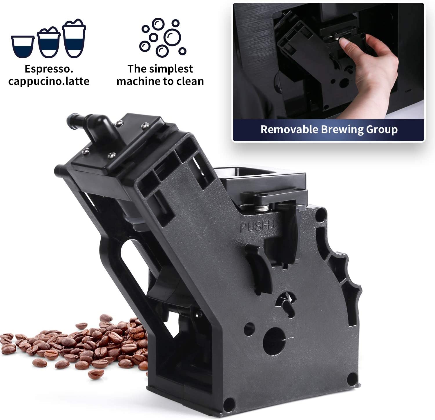 - Super-Automatic Espresso Coffee Maker -Bean to cup feature with one touch brewing and frothing for 11 varieties, meeting different preference in your coffee, no matter at home or in office, you get it all. You can also get a customized coffee by adjusting the volume and length of grounds,coffee, temperature, milk foam at a touch of few buttons