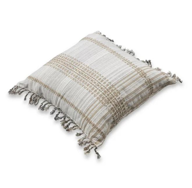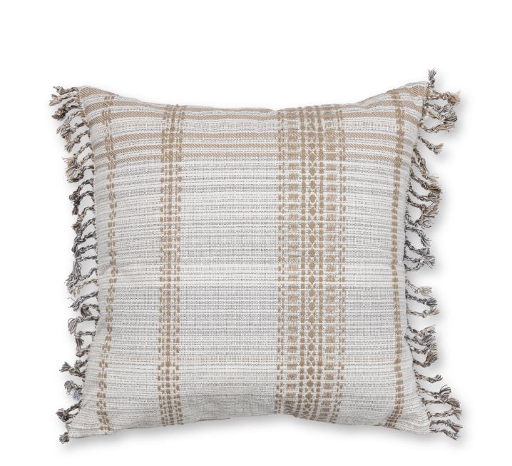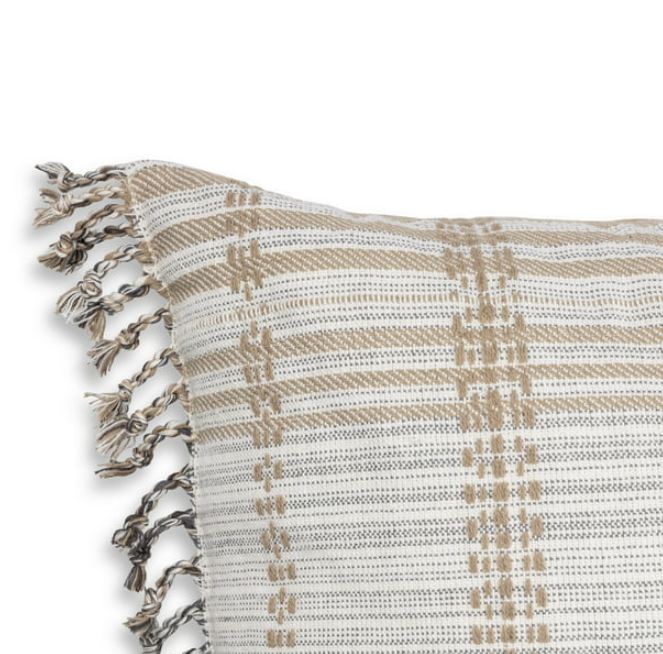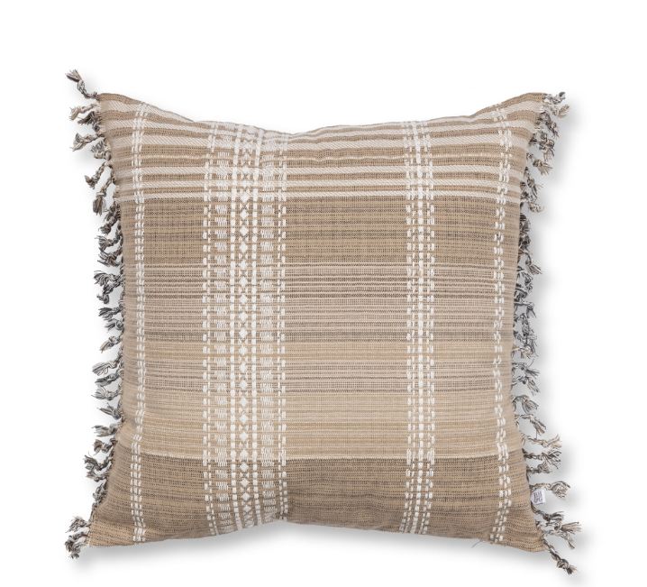 Give your home a fresh new look with the Reversible Plaid pillow. This 20 x 20 square decorative pillow is made from 100% Cotton in a Brown and Cream plaid. This beautiful throw pillow reverses to a contrasting plaid and has a knotted fringe detail on each end. This pillow also features a Down Alternative insert that can be simply removed with the invisible zipper. Easy care with simple spot cleaning. Choose from additional colors and sizes of this Reversible plaid pillow to create your own special look.