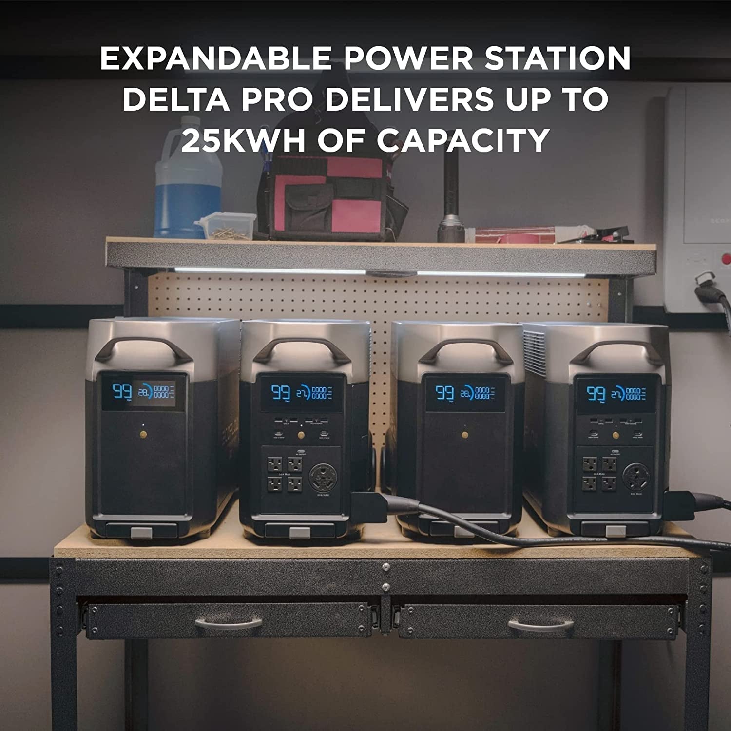 - 【Expandable Capacity】DELTA Pro can expand capacity from 3.6kWh to 25kWh with Extra Batteries, Ecoflow Smart Generators and the Smart Home Panel for battery backup power supply. A single DELTA Pro unit packs a 3600W AC output, which can be expanded up to 4500W with X-Boost technology. Power 99.99% heavy-duty devices at home, outdoors, or at work. You can even pair two units together to achieve 7200W. Replace noisy, smoky generators with a silent, fume-free home backup power station.