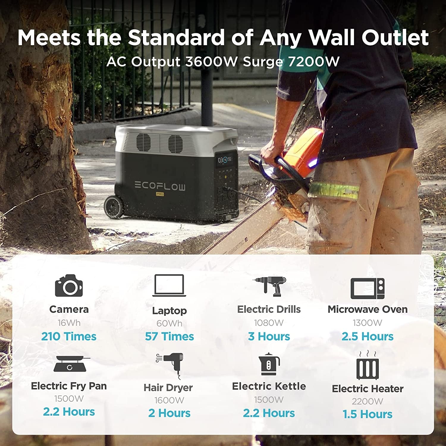 - 【5 Ways to Charge】Pick from EV station charging, solar, wall outlets, using the smart outdoor generator or via a car outlet. Faster than any other 3000 watt solar generator. Keep going for miles when your electric vehicle runs out of battery. Either at home or on the go, DELTA Pro will have you back on the road in no time.