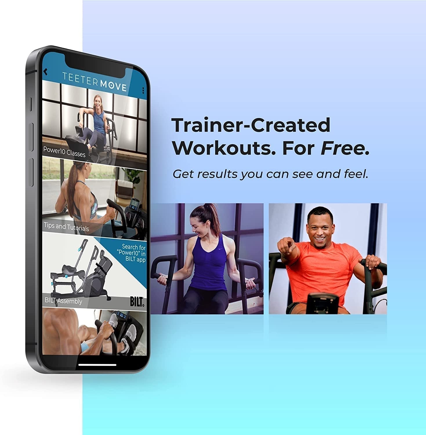 Easy StorageTransport Wheels – Conveniently roll away for easy storage. Space-Saving Design – Stores in an upright position when not in use. | Frustration-Free AssemblyThe free BILT app makes assembly even easier with 3D interactive instructions. | Teeter Quality & SupportFull support from Teeter U.S. Based Product Experts via phone, chat or email. Since 1981, Teeter has specialized in engineered fitness solutions to help people feel better, move better, and live better. |