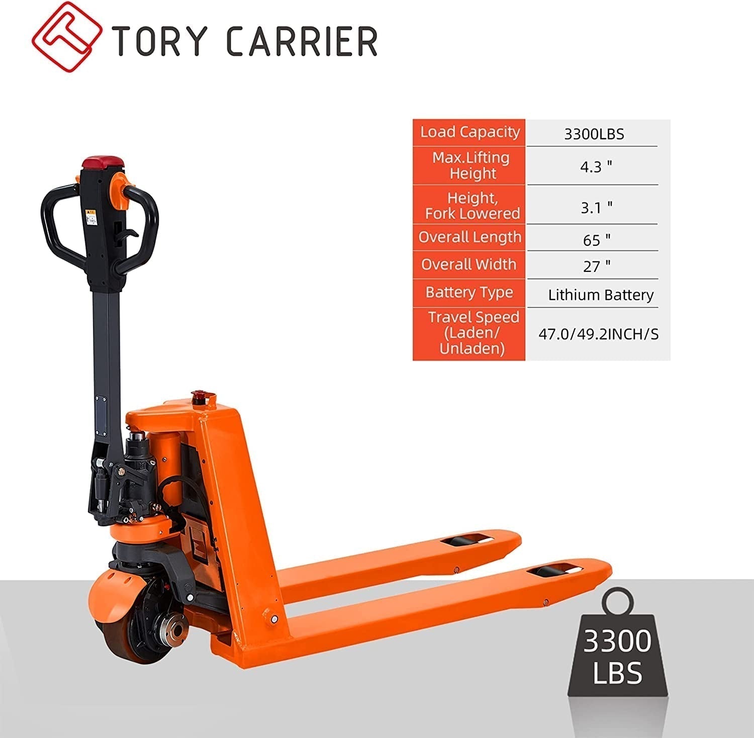- This pallet jack with load capacity:3300lbs.Lithium battery capacity:24V/20AH. It goes forward and backward, up and down by electricity.