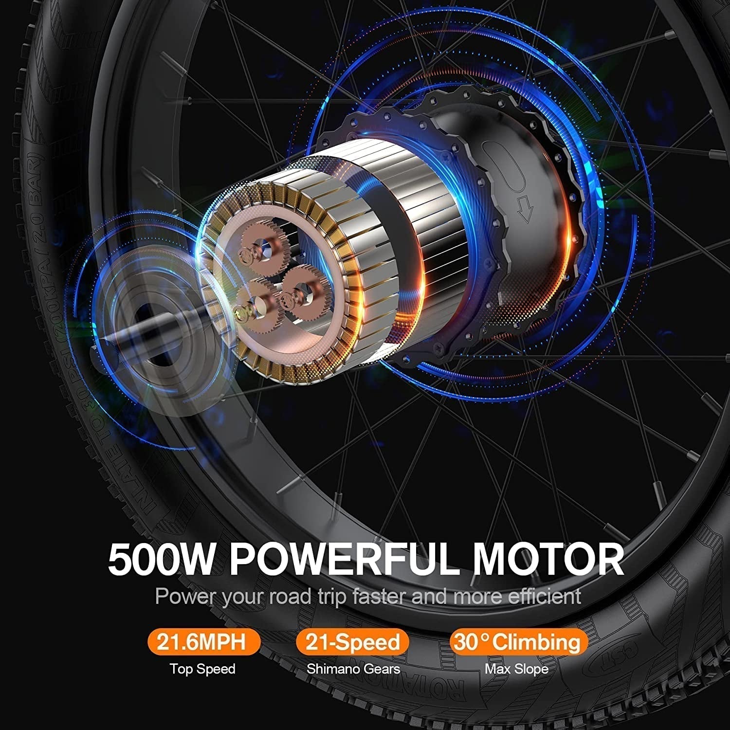 - STRONG 500W POWER: This 500W Powerful ebike for adults is equipped with built-in 48V 10Ah rechargeable lithium-ion battery(about 5h charging time) to achieve a top speed of 21.6mph.