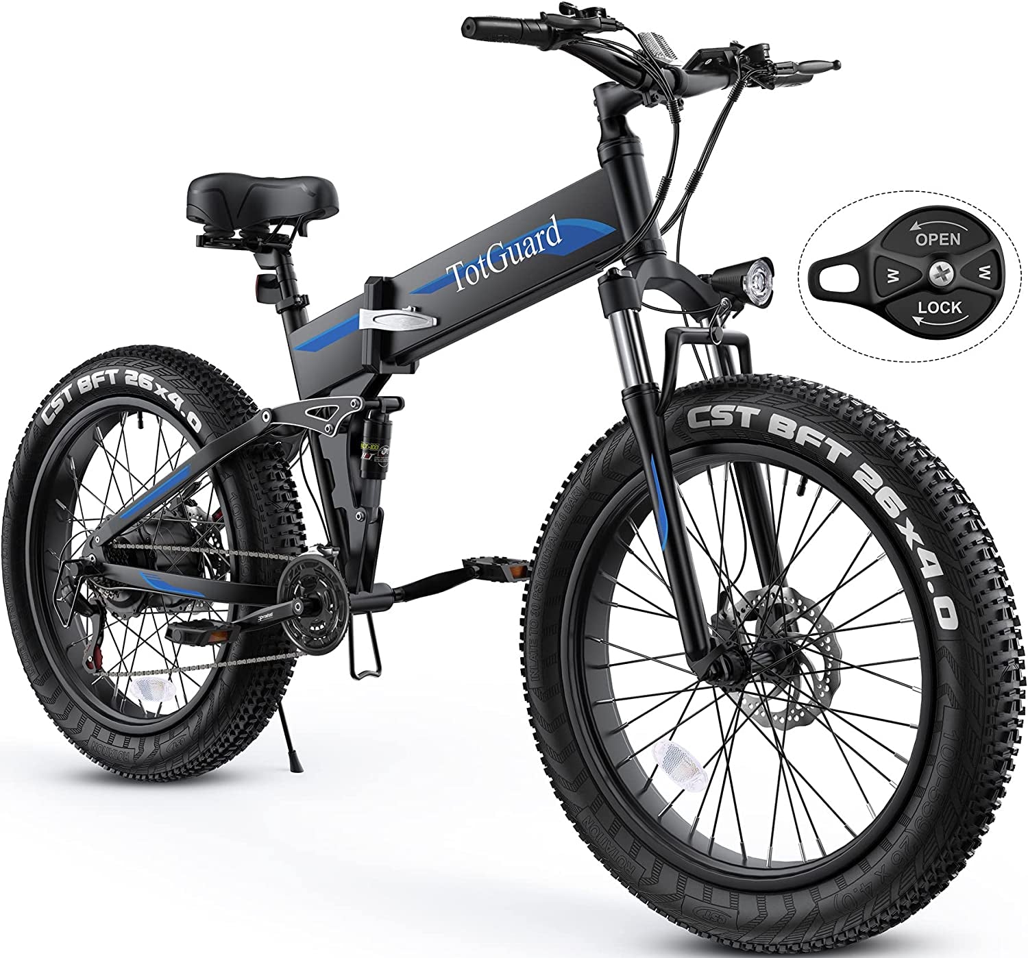 The TotGuard 26" fat tire electric bike has the advantage of having 4-inch-wide fat tires, which have more surface contact with the ground, providing enhanced traction and stability.