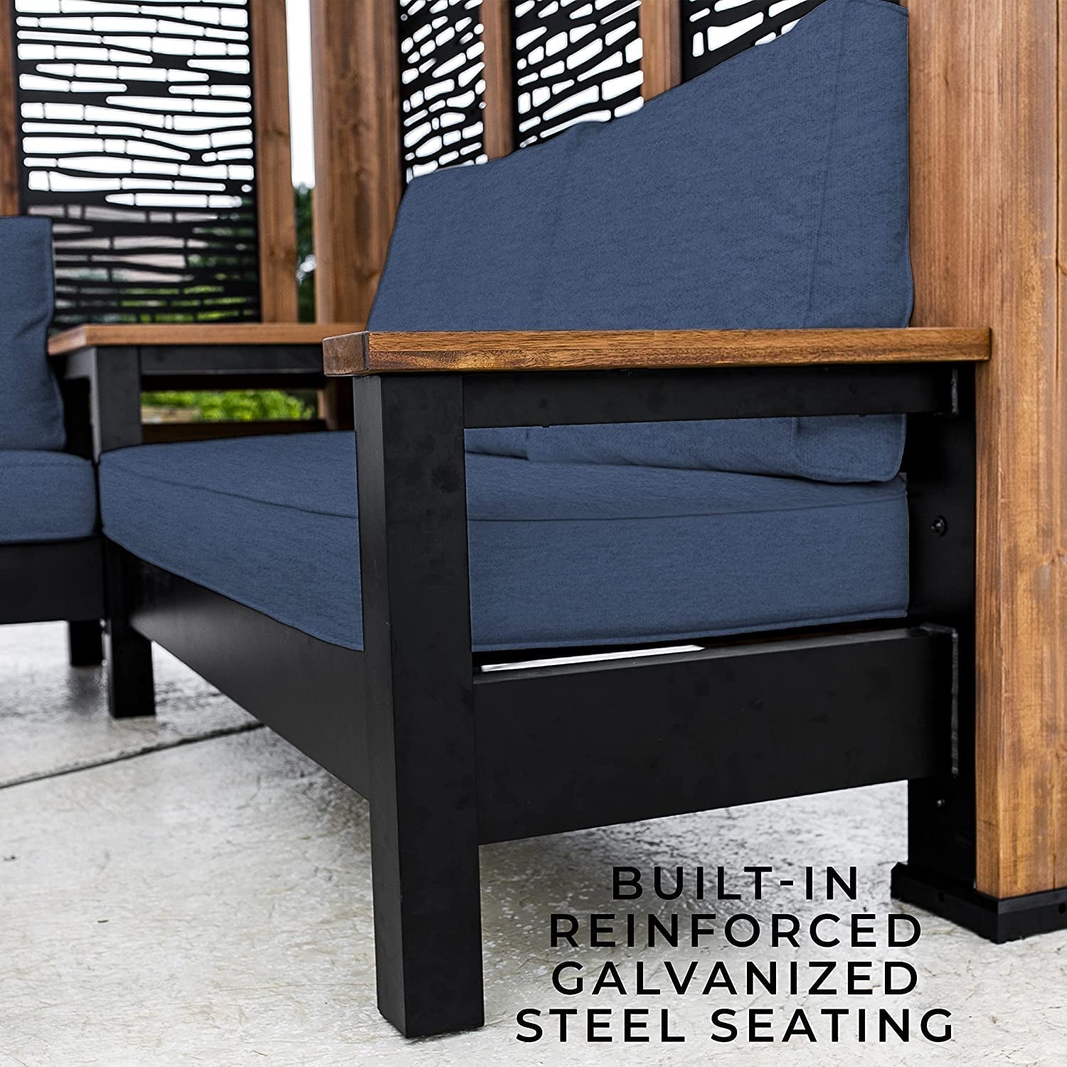 Tuscany Cabana Pergola with Bamboo Privacy Panels and Conversation Seating in Indigo